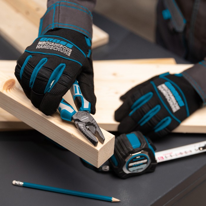 Универсальные комбинированные перчатки Gross URBANE 90322 размера XL обладают увеличенной прочностью, а пенная вставка надежно защищает руки от травм. Перчатки плотно облегают кисти рук и не препятствуют свободным движениям пальцев. Будут полезны при выполнении тяжелых строительных, ремонтных и слесарно-монтажных работ.ПреимуществаНескользящая поверхность — перчатки помогают надежно удерживать инструменты, поскольку на пальцах имеются латексные протекторы.Прочность — в области суставов пальцев перчатки защищены от протирания специальными вставками.Безопасное использование — благодаря светоотражающим лентам изделия хорошо заметны в темное время суток.Защита от строительного мусора — посторонние частицы не попадают внутрь перчаток, т.к. гибкие неопреновые манжеты плотно фиксируются на запястьях лентами-застежками типа velcro.Комфорт во время работы — ударопоглощающие накладки защищают ладони от вибраций, а швы, выполненные по технологии Ergonomic Cut, не натирают кожу.Высокое качество — устойчивость изделий к механическим повреждениям и износу подтверждена результатами успешно пройденных испытаний.