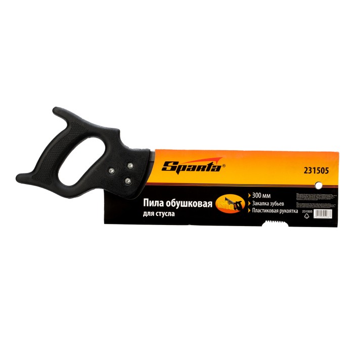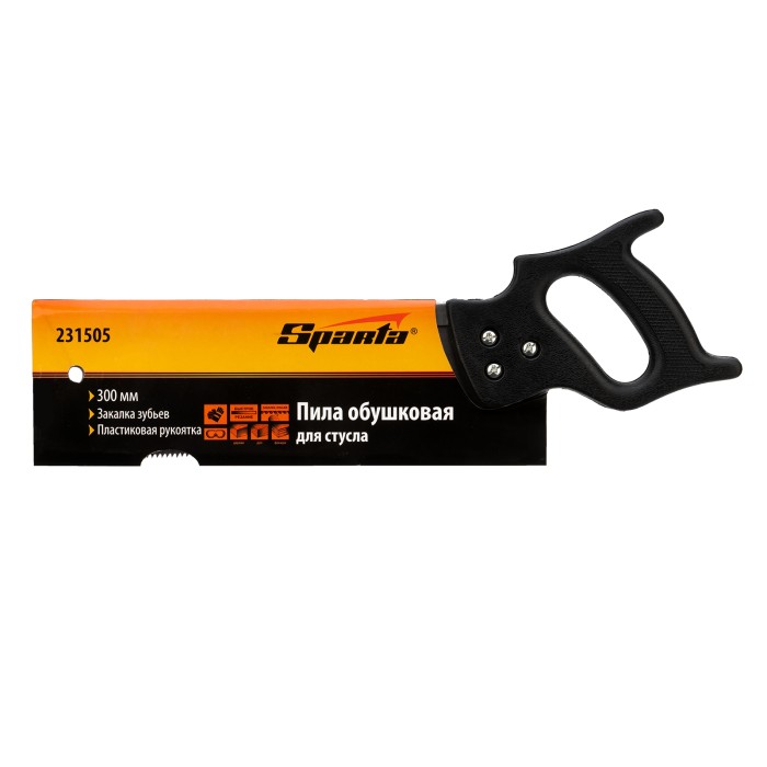 Обушковая пила для стусла Sparta 231505 с полотном длиной 300 мм используется для распиливания под углом заготовок из древесины, фанеры или ДСП. Пилить можно вдоль или поперек волокон. В верхней части полотна имеется ребро жесткости, которое не дает ему сгибаться. Шаг зубьев составляет 7-8 TPI, что обеспечивает быстрый рез. Допускается переточка режущей кромки. Инструмент применяется во время выполнения столярных работ.ПреимуществаПрочность и упругость — полотно изготовлено из холоднокатаной пружинной стали 65Mn.Высокий показатель износостойкости — зубья закалены до твердости 45 HRC.Решение широкого спектра задач — зубья с двухгранной заточкой позволяют проводить распиловку в направлении как на себя, так и от себя.Защита от разрушения — поверхность полотна покрыта лаком для предотвращения коррозии.Надежная конструкция — полотно надежно зафиксировано 3 винтами и не выскочит из рукоятки во время работы.Эргономичность — пластиковая рукоятка с рельефной поверхностью не выскальзывает из ладони.