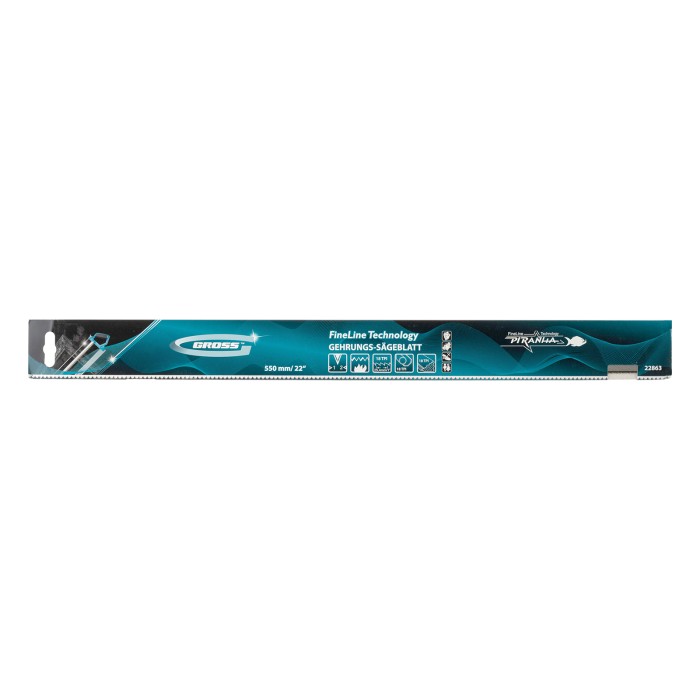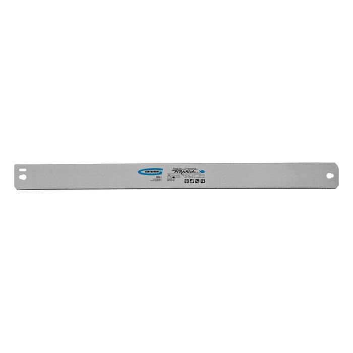 Пильное полотно Gross «PIRANHA» 22863 длиной 550 мм, с каленым зубом с 2D-заточкой, 18 TPI — режущий элемент для прецизионного стусла, применяемый для распила под углом заготовок из дерева, мягкого металла и пластика. Ме...