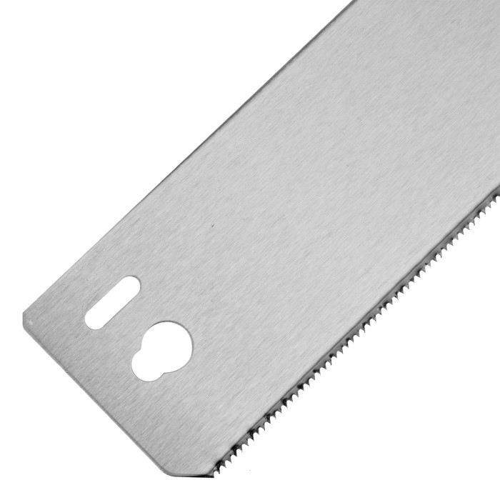 Пильное полотно Gross «PIRANHA» 22863 длиной 550 мм, с каленым зубом с 2D-заточкой, 18 TPI — режущий элемент для прецизионного стусла, применяемый для распила под углом заготовок из дерева, мягкого металла и пластика. Мелкие зубья с шагом 18 TPI позволяют получить точный и чистый рез. Полотно используется для пиления плинтусов, реек, дверных наличников и других деталей.ПреимуществаПолотно из высокотвердой японской стали SK-5 отличается механической прочностью и долговечностью.Зубья вышлифованы алмазным кругом из предварительно закаленной стальной ленты, что обеспечивает идеальную геометрию режущей кромки и высокое качество реза.Дополнительная индукционная закалка до 64-66 HRC увеличивает жесткость и износостойкость зубьев, продлевая срок службы инструмента.Волнистая разводка зубьев обеспечивает эффективное удаление стружки и облегчает пиление.