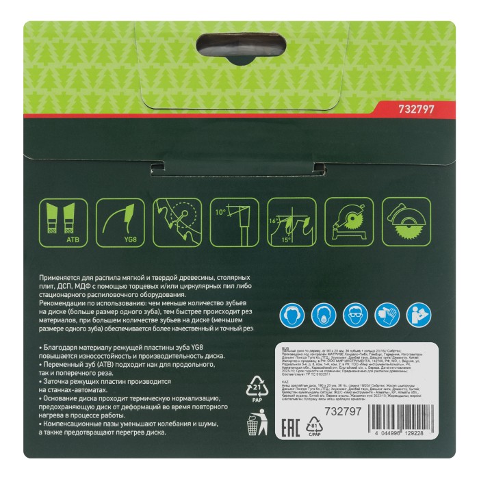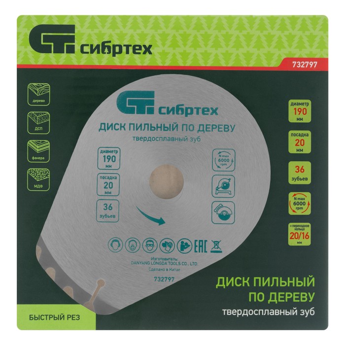 Пильный диск по дереву Сибртех 732107 диаметром 140 х 20 мм, с 20 зубьями и переходным кольцом 20/16, предназначен для быстрого распила древесины мягких и твердых пород, фанеры, ДСП, МДФ. Используется с циркулярными и торцовочными пилами с посадочным диаметром 20 мм. Переходное кольцо 20/16 позволяет при необходимости изменить размер посадки. Крупные зубья обеспечивают быстрый рез. Диск подходит для бытового применения.ПреимуществаПрочность и высокая производительность — основание диска изготовлено из стали 50, режущие пластины выполнены из твердого сплава YG8 и заточены с использованием алмазного абразива.Универсальность — зубья типа АТВ позволяют производить как продольный, так и поперечный рез.Качественный рез материалов — зубья имеют попеременную заточку.Защита от заклинивания — компенсационные прорези препятствуют деформации диска при нагреве.Высокий ресурс — режущие пластины припаяны качественным медным припоем, поэтому диск выдерживает интенсивные нагрузки.