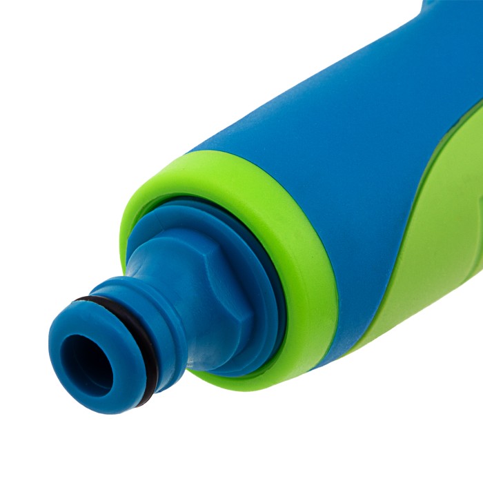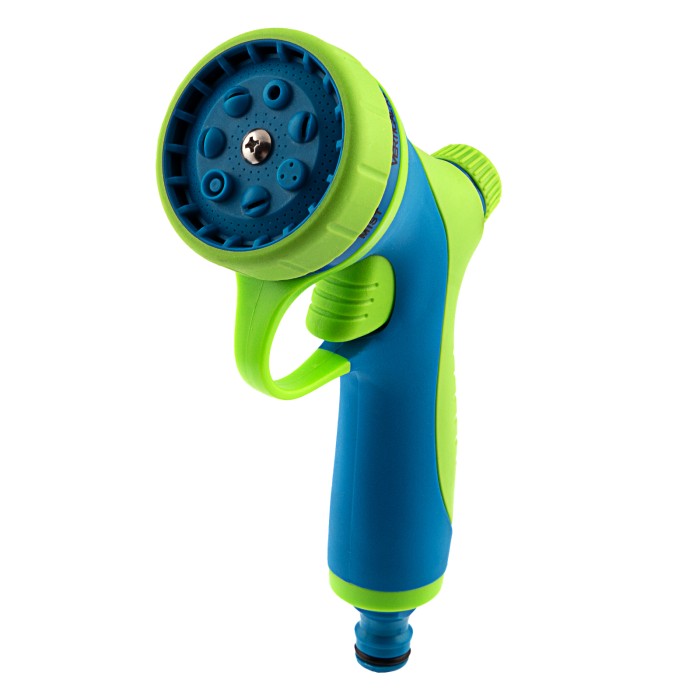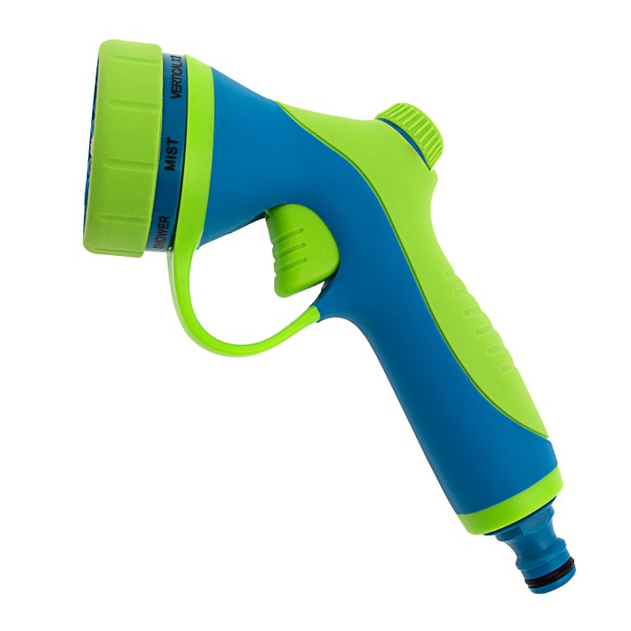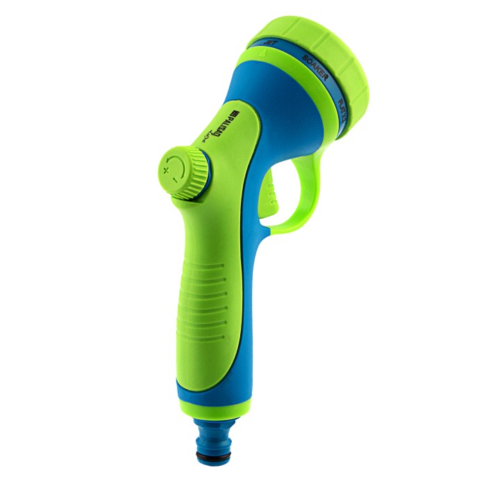 Пластиковый пистолет-распылитель Palisad LUXE 65163 с 7 режимами полива применяется для быстрого и качественного орошения клумб и грядок, очищения садовых дорожек и т.д. Он пригодится дачникам и работникам коммунальных служб для обслуживания придомовых территорий, небольших скверов и парков. Универсальный пистолет можно установить на любую систему полива ТМ Palisad.ПреимуществаДоступны 7 режимов работы: подача жесткой, двойной плоско-вертикальной или двойной плоско-горизонтальной струи, сочащийся режим, душ, распыление типа «туман» или конусное.Рабочая часть легко поворачивается, это позволяет быстро переключаться между режимами подачи воды, ориентируясь на тип и хрупкость растений.Корпус выполнен из прорезиненного ABS-пластика — легкого и прочного материала, устойчивого к атмосферным воздействиям.Благодаря специальному фиксатору можно организовать непрерывный полив, что обеспечивает комфортную работу.Встроенный быстросъемный коннектор с аквастопом предотвращает подачу воды после отключения пистолета от шланга.Курок расположен спереди, что повышает удобство эксплуатации пистолета-распылителя.Рукоятка эргономичной формы надежно ложится в руку и не проскальзывает.