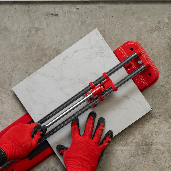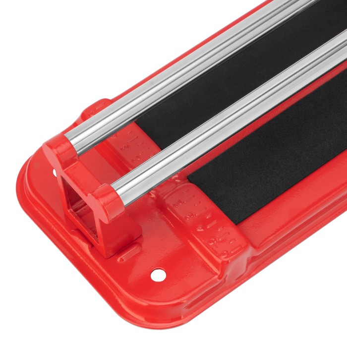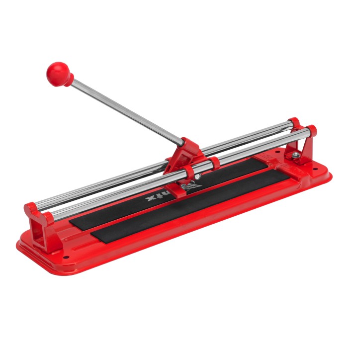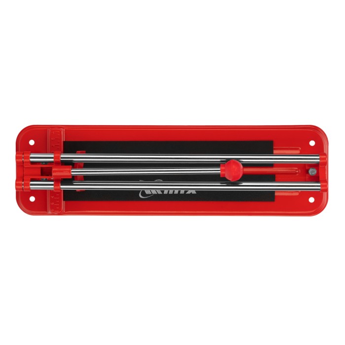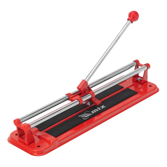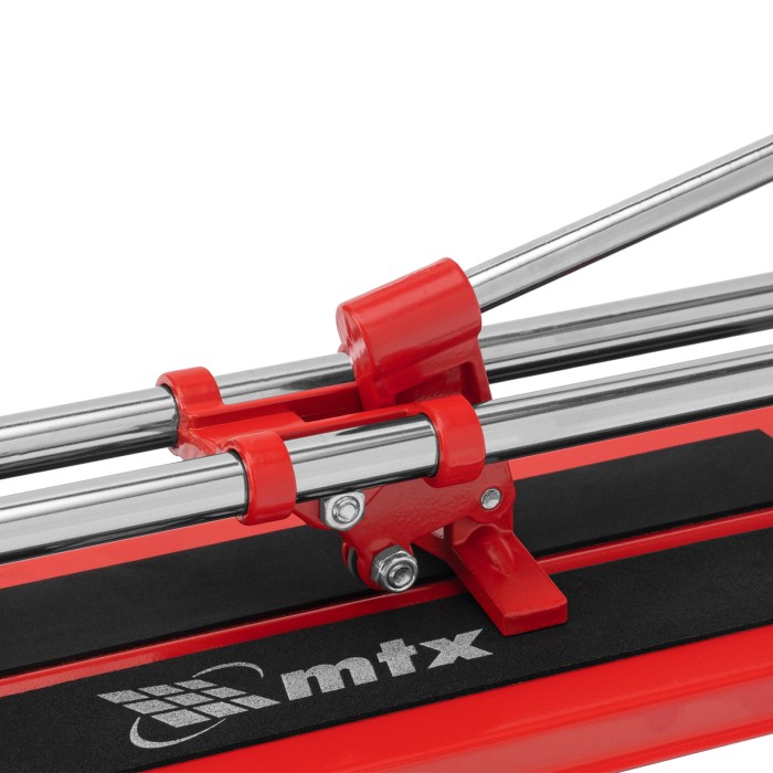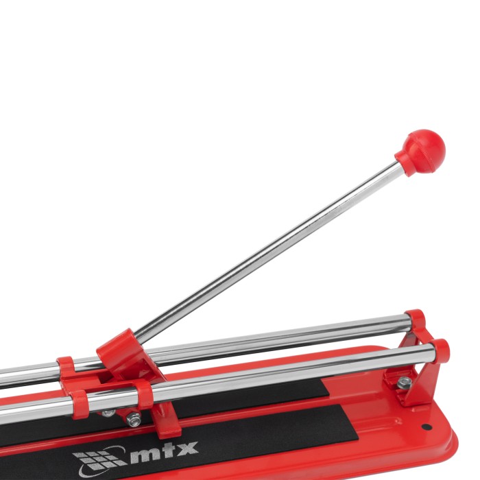 Плиткорез MTX 87616 — инструмент для работы с керамической плиткой размером до 350 х 12 мм. Упрощает и ускоряет резку, позволяет получать ровный и аккуратный срез.ПреимуществаВысокий ресурс — режущий ролик изготовлен из твердосплавного материала ВК-8.Возможность фиксации на поверхности рабочего стола — в основании плиткореза имеются специальные отверстия.Плавный ход — каретка свободно передвигается благодаря двум направляющим из высококачественной инструментальной стали с антикоррозийным покрытием.Высокое качество работы — стальное основание обеспечивает устойчивость плиткореза, мягкие амортизирующие накладки предотвращают смещение плитки.Комфортная работа — на рукоятке имеется специальный захват.