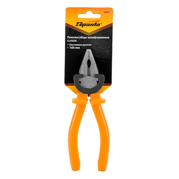 Шлифованные плоскогубцы Sparta Classic 16957 длиной 160 мм, с пластмассовыми рукоятками, позволяют удерживать, сгибать или выравнивать различные предметы. Губки со специальными выемками позволяют захватывать круглые детали, а режущие кромки легко перекусывают проволоку и провода. Плоскогубцы используются для решения профессиональных и бытовых задач.ПреимуществаПрочность и долговечность — рабочие части изготовлены из углеродистой стали 45 и отшлифованы.Эффективная работа — режущие кромки, закаленные токами высокой частоты до 53 HRC, справляются с твердой проволокой без потери остроты.Устойчивость к деформации при высоких нагрузках — твердость зажимных частей составляет 45,5 HRC.Эргономичность — пластиковые рукоятки снабжены упорами для пальцев.
