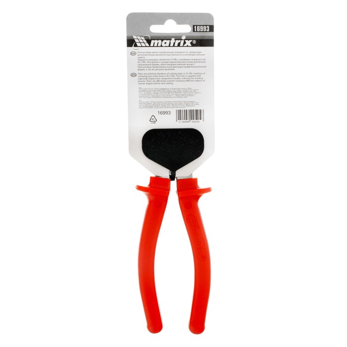 Шлифованные плоскогубцы Matrix Econom 16993 длиной 180 мм, с пластмассовыми рукоятками, необходимы для выполнения слесарных, столярных и монтажных работ. Они удерживают плоские и круглые предметы, а также перекусывают проволоку и провода. Губки с зазубренной поверхностью надежно фиксируют детали. Инструмент используется во время строительства, ремонта, обслуживания автомобилей, а также полезен в быту.ПреимуществаПрочность и долговечность — инструмент изготовлен из углеродистой стали 45, поверхность стальных частей отшлифована.Высокий ресурс — режущие элементы закалены высокочастотными токами до твердости около 46 HRC и долго сохраняют остроту.Устойчивость к деформации при высоких нагрузках — зажимные части имеют твердость около 40 HRC.Надежный хват — благодаря ограничителям пластмассовые рукоятки не выскальзывают из ладони.