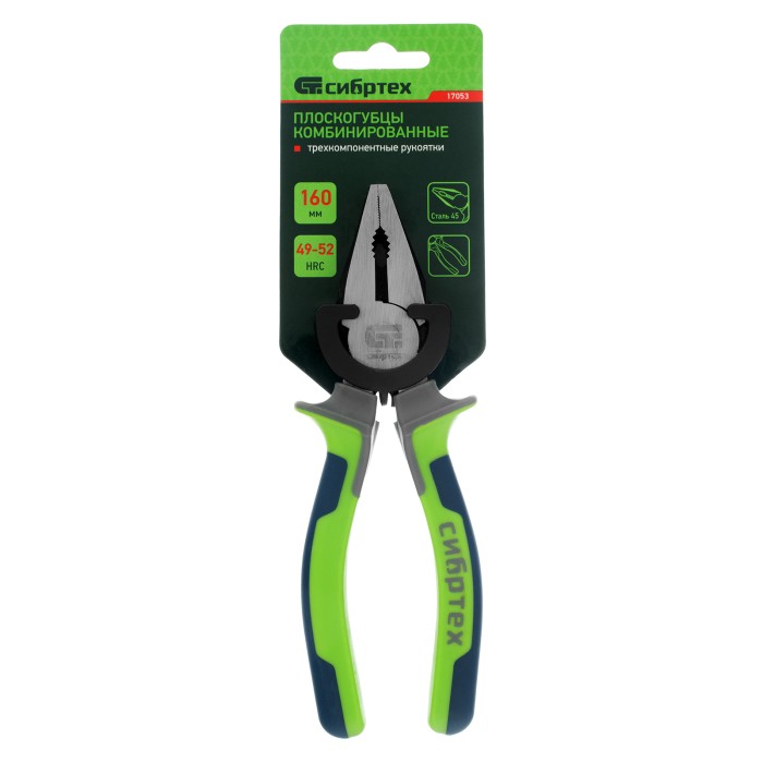 Плоскогубцы комбинированные, 160 мм, фосфатирование, трехкомпонентные рукоятки Сибртех
