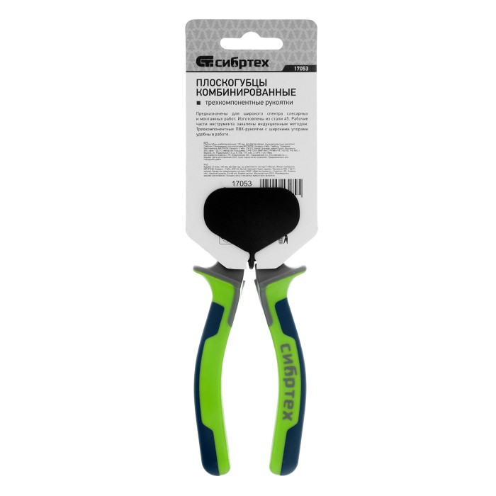 Комбинированные плоскогубцы Сибртех 17053 длиной 160 мм, с фосфатированием и трехкомпонентными рукоятками, используются для перекусывания проволоки и захвата деталей, будут полезны монтажникам и слесарям. Инструмент поможет произвести наладку оборудования, отремонтировать сантехнику и выполнить другие работы.ПреимуществаПрочность и износостойкость — головка изготовлена из стали 55, режущие кромки прошли закалку высокочастотными токами.Антикоррозийная защита — рабочая часть плоскогубцев фосфатирована и отшлифована.Эргономичность — трехкомпонентные рукоятки с защитными упорами не выскальзывают из ладони.