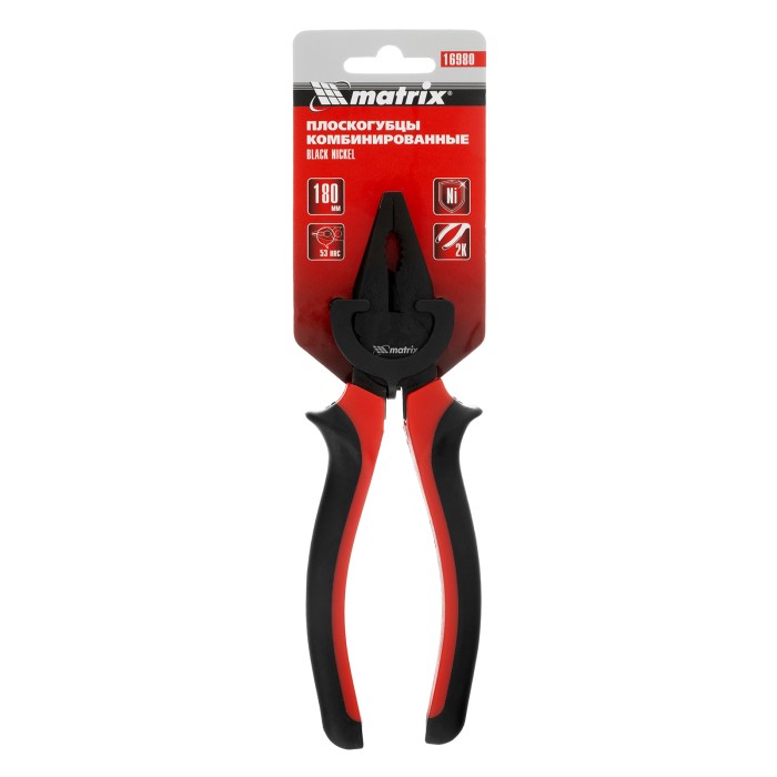 Плоскогубцы комбинированные Black Nickel, 180 мм, двухкомпонентные рукоятки Matrix