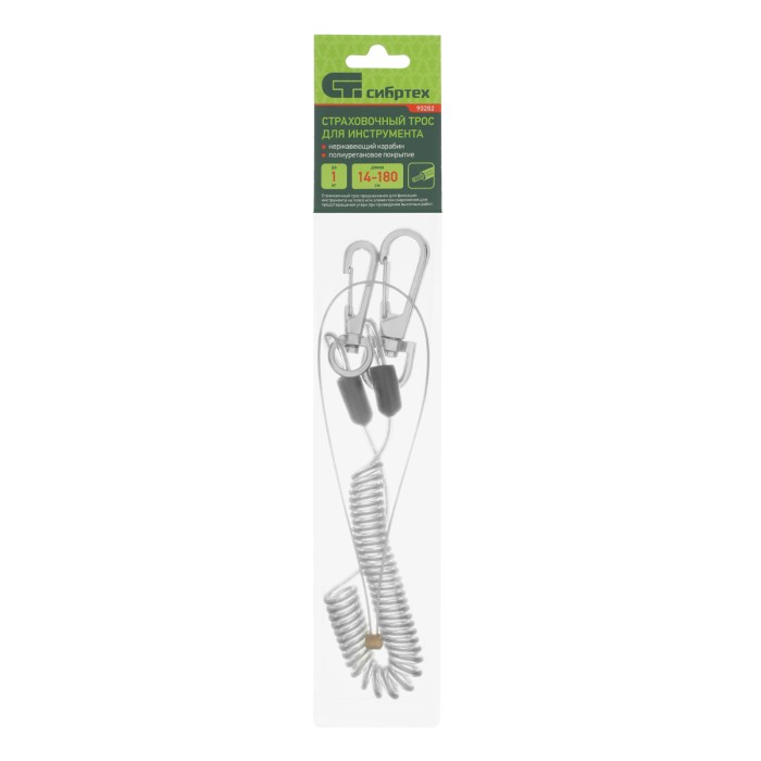 Подвес для инструмента Сибртех 90282 со стальным сердечником, нержавеющими застежкой и кольцом, предотвращает падение инструмента весом до 1 кг во время выполнения работ на высоте. Растягивается до 165 см, поэтому даже на вытянутой руке с инструментом комфортно работать. Пригодится на строительной площадке.ПреимуществаПрочность и долговечность — сердечник изготовлен из стали, полиуретановая оплетка защищает витки от деформации.Надежное крепление к скобе или крюку — производитель предусмотрел стальные карабины и кольцо.Высокий ресурс — кольцо и карабины устойчивы к коррозии и выдерживают длительное использование.