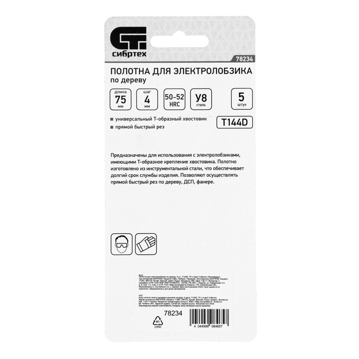 Полотна для электролобзика по дереву, 5 шт, T144D, 75 х 4 мм Сибртех
