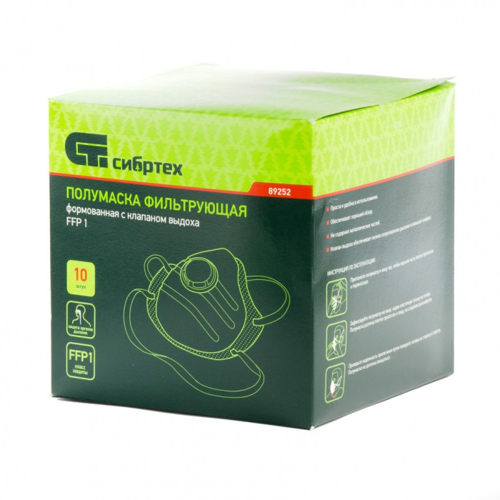 Фильтрующая полумаска (респиратор) Сибртех 89252, с клапаном выдоха, 10 шт., класс FFP1, обеспечит защиту органов дыхания при содержании вредного вещества в воздухе в количестве до 4 предельно допустимых концентраций (ПД...