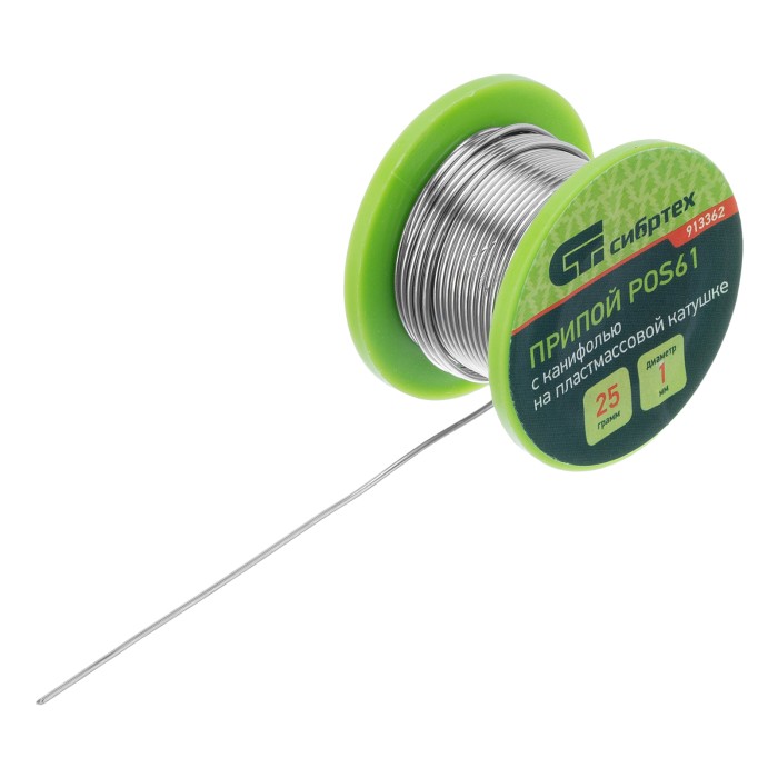 Припой с канифолью, D 1 мм, 25 г, POS61, на пластмассовой катушке Сибртех