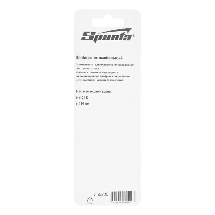 Автомобильный пробник Sparta 555205 длиной 120 мм, с пластмассовым корпусом, способен обнаружить напряжение постоянного тока в пределах 6-24 В. Тестер напряжения будет полезен мастерам на станциях технического обслуживан...