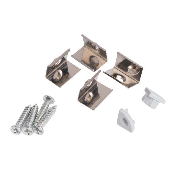 Профиль накладной для светодиодной ленты FERON LF-0808 «угловой круглый», цвет серебро, в комплекте 2 заглушки + экран + 4 крепежа, 2000*7.9*7.9мм