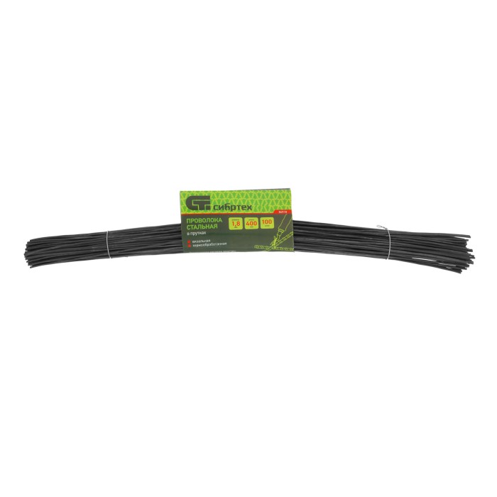 Проволока стальная в прутках 400 мм х 100 шт, вязальная, термообработанная 1.8 мм Сибртех