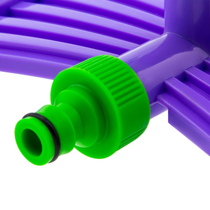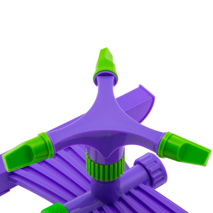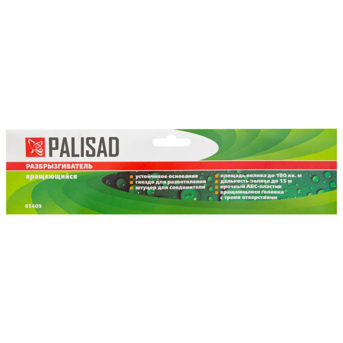 Пластиковый вращающийся разбрызгиватель Palisad 65409 с 3 лопастями и подставкой, штуцером D 3/4 дюйма, D 15 м, подходит для кругового полива участков площадью до 180 кв м. Он значительно упрощает полив газона, огорода, клумб и т.д. С помощью разбрызгивателя можно создать поливочную линию для орошения растений.ПреимуществаВысококачественное исполнение — разбрызгиватель выполнен из долговечного ABS-пластика.Подставка в комплекте — разбрызгиватель надежно фиксируется на неровных поверхностях.Регулируемые форсунки — можно менять их угол наклона для орошения больших и маленьких участков.