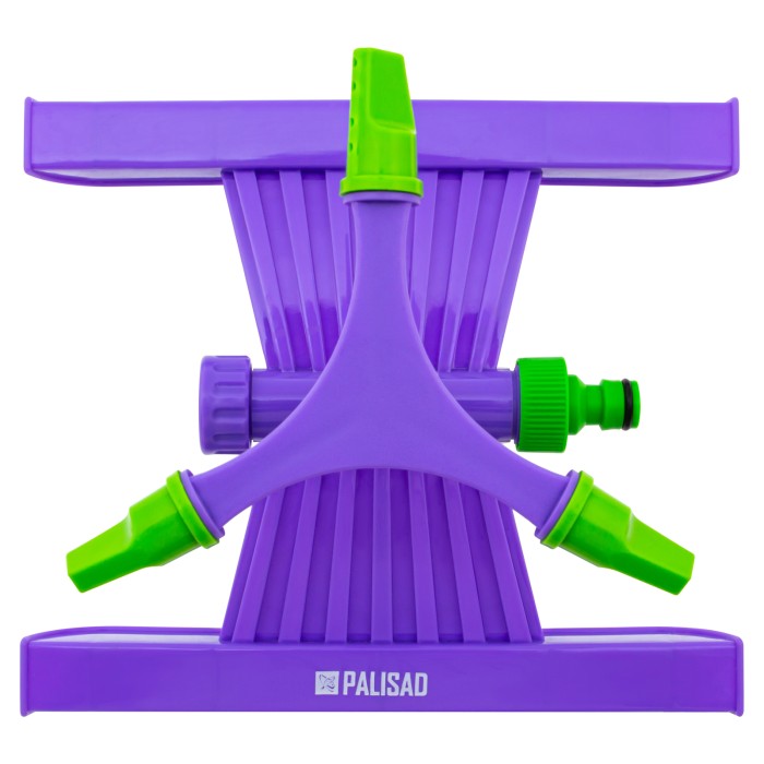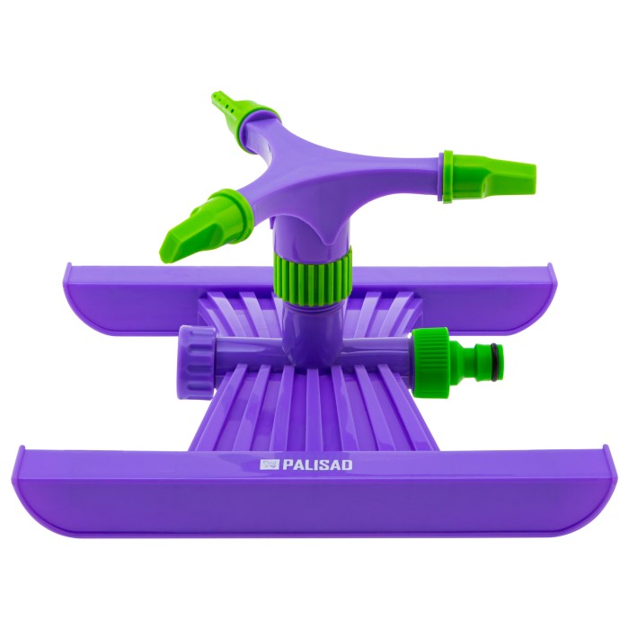 Пластиковый вращающийся разбрызгиватель Palisad 65409 с 3 лопастями и подставкой, штуцером D 3/4 дюйма, D 15 м, подходит для кругового полива участков площадью до 180 кв м. Он значительно упрощает полив газона, огорода, ...
