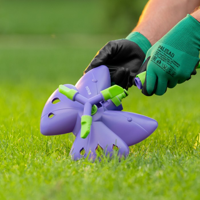 Вращающийся разбрызгиватель Palisad «Бабочка» 65401 с 3 лопастями, с регулировкой, используется для орошения газонов и садовых участков. Максимальная площадь полива составляет 58 кв.м. Дальность распыления можно варьиров...