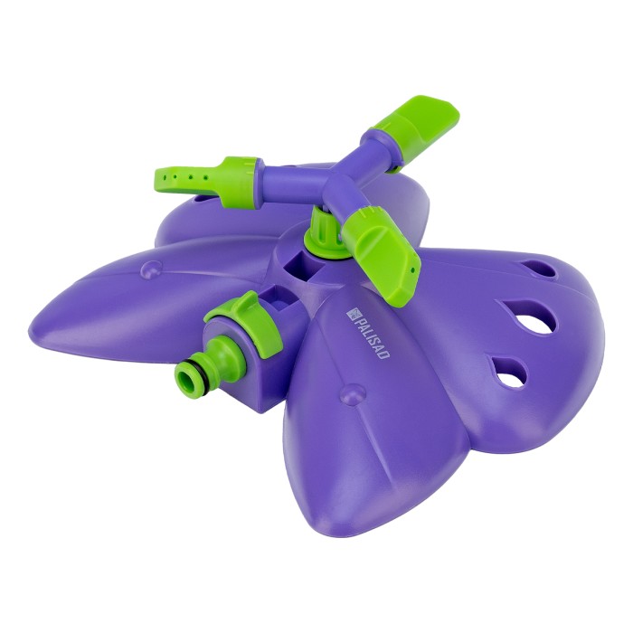 Вращающийся разбрызгиватель Palisad «Бабочка» 65401 с 3 лопастями, с регулировкой, используется для орошения газонов и садовых участков. Максимальная площадь полива составляет 58 кв.м. Дальность распыления можно варьировать от 2 до 4,3 м. На каждой лопасти 4 отверстия, обеспечивающие равномерный полив. Основание выполнено в форме бабочки, что придает устройству оригинальный вид.ПреимуществаДолговечность — корпус из прочного ABS-пластика устойчив к повреждениям.Возможность установки на неровной почве — изделие имеет широкую устойчивую подставку.Универсальность — штуцер разбрызгивателя совместим с любыми поливочными системами Palisad и Palisad Luxe.