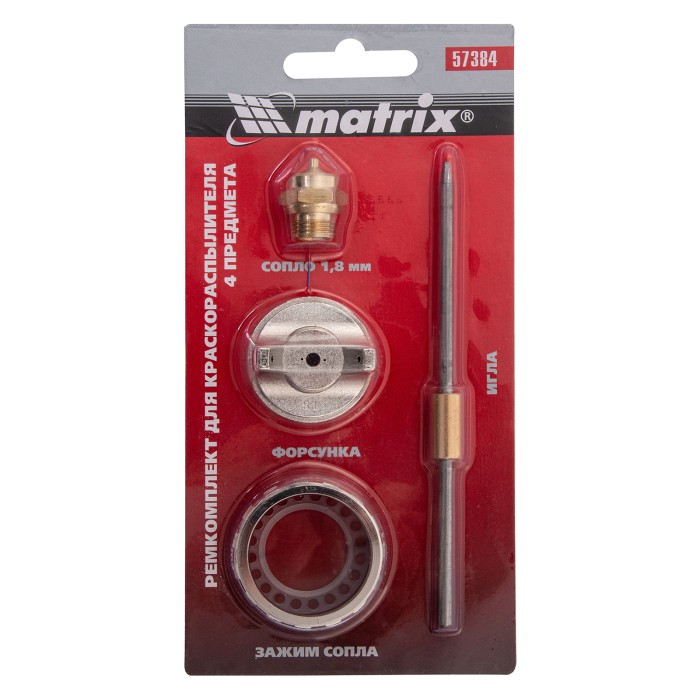 Ремкомплект для краскораспылителя 4 предмета : сопло 1.8 мм + игла + форсунка + зажим сопло Matrix
