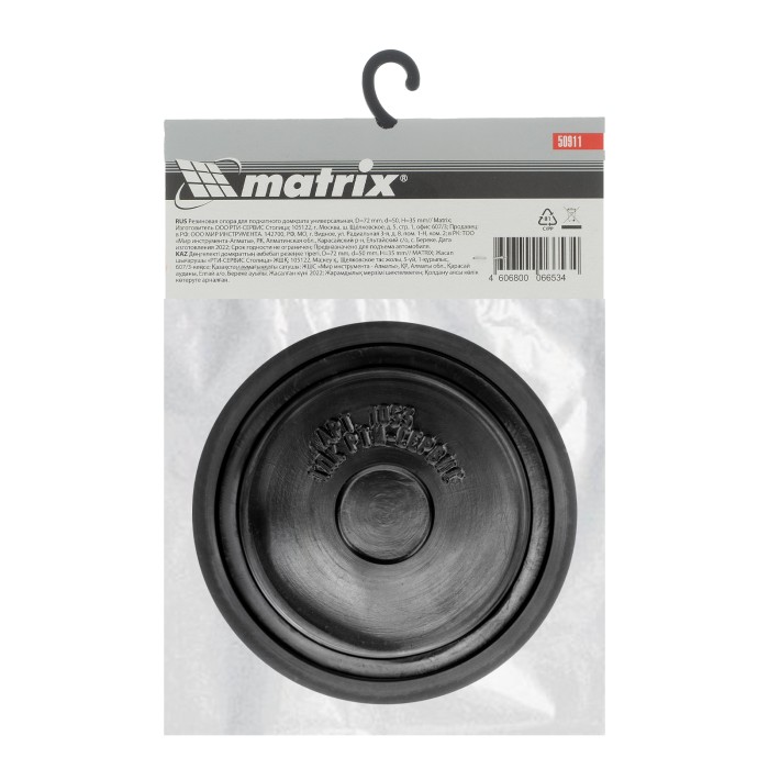 Универсальная резиновая опора Matrix 50911 с верхним диаметром 72 мм и нижним диаметром 50 мм, толщиной 35 мм, предохраняет кузов авто при поднятии на подкатном домкрате. Также защищает само подъемное устройство от механ...