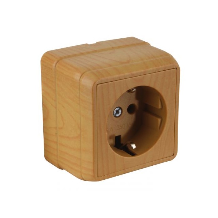 Розетка 1-ая (открытая, с/з) дуб, BRON, MUTLUSAN