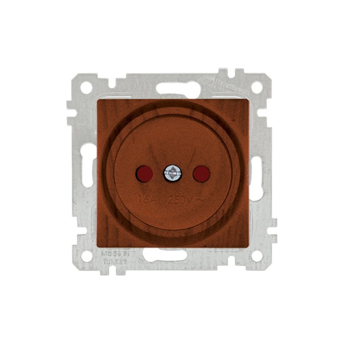 Розетка 1-ая (скрытая, без рамки, б/з, шторки) орех, RITA, MUTLUSAN