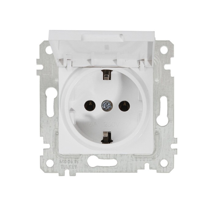Розетка 1-ая (скрытая, без рамки, с/з, с крышкой) белая, RITA, MUTLUSAN
