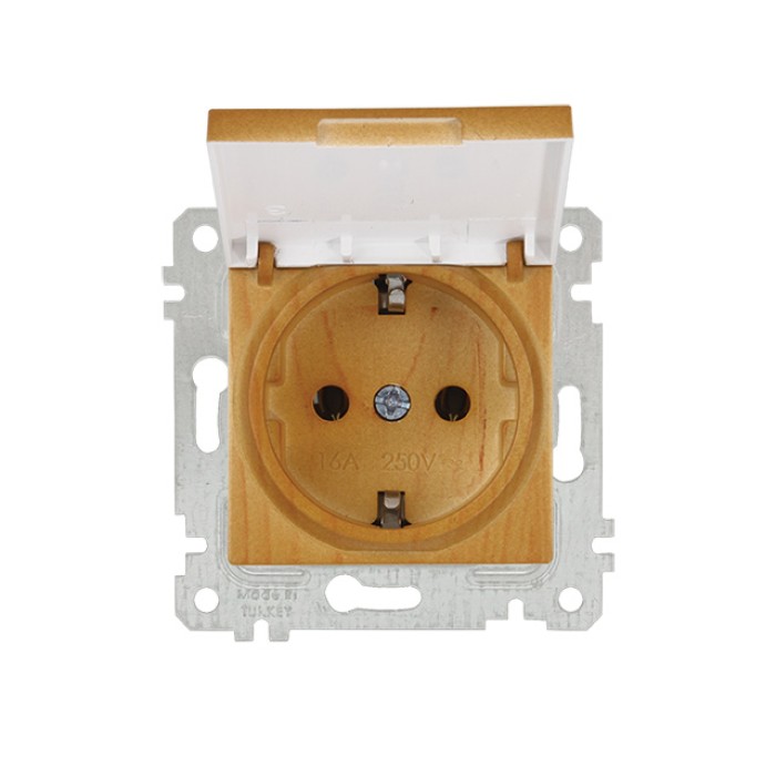 Розетка 1-ая (скрытая, без рамки, с/з, с крышкой) дуб, RITA, MUTLUSAN