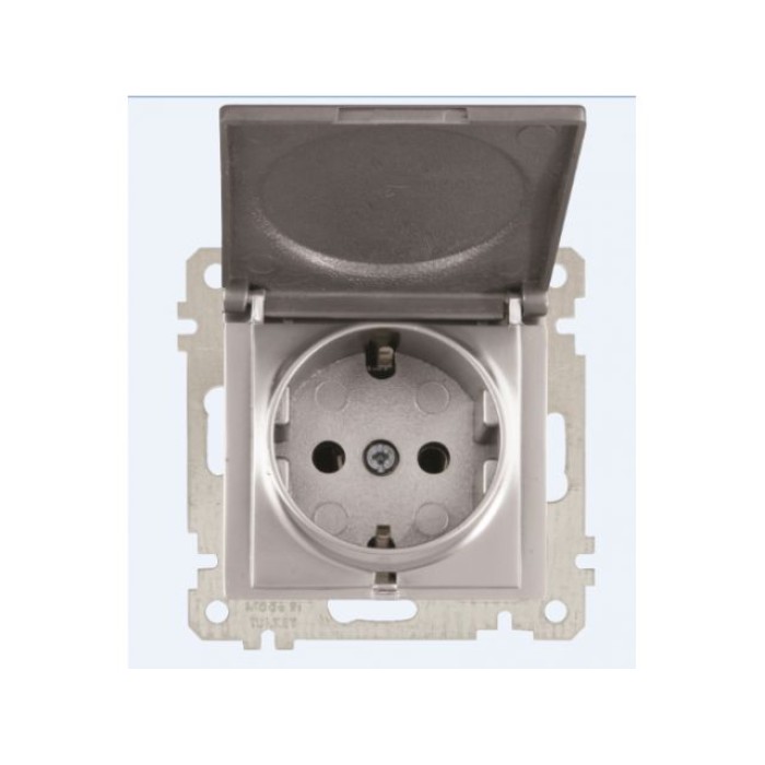 Розетка 1-ая (скрытая, без рамки, с/з, с крышкой) серебро, DARIA, MUTLUSAN