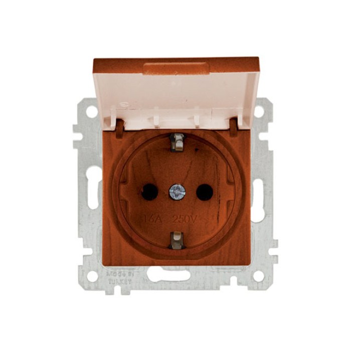 Розетка 1-ая (скрытая, без рамки, с/з, с крышкой) вишня, RITA, MUTLUSAN
