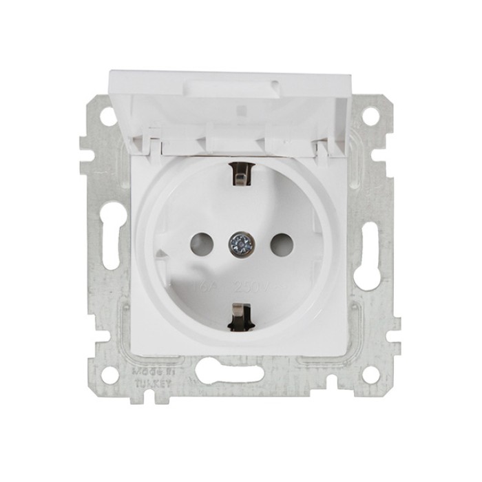Розетка 1-ая (скрытая, без рамки, с/з, шторки, с крышкой) белая, RITA, MUTLUSAN