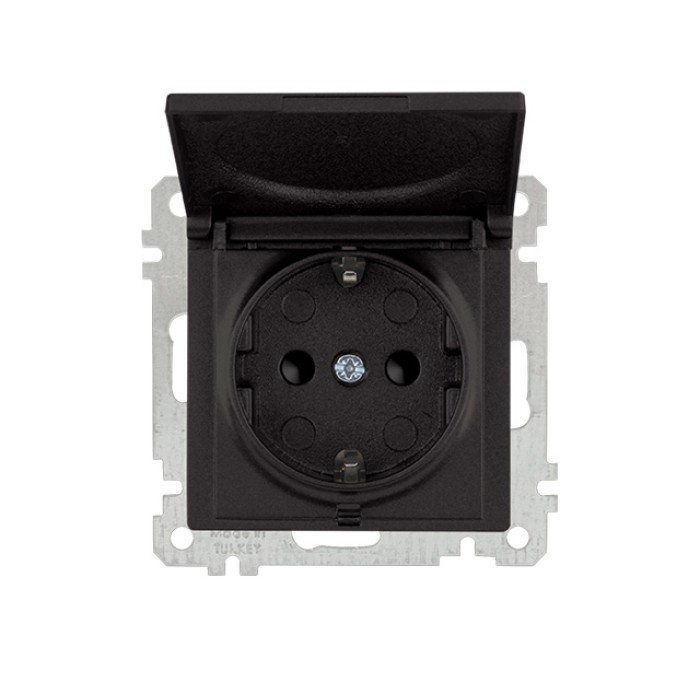 Розетка 1-ая (скрытая, без рамки, с/з, шторки, с крышкой) черная, DARIA, MUTLUSAN
