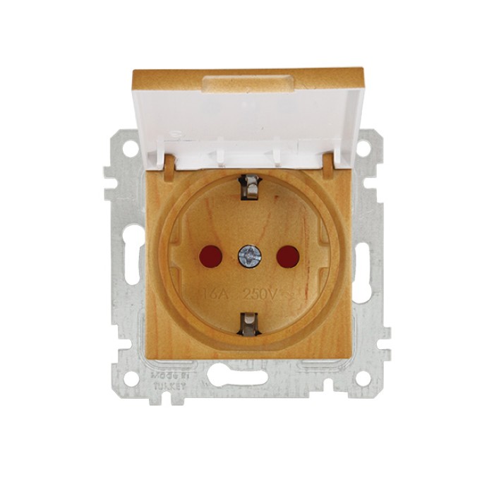 Розетка 1-ая (скрытая, без рамки, с/з, шторки, с крышкой) дуб, RITA, MUTLUSAN