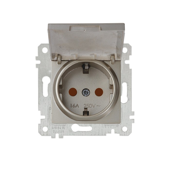 Розетка 1-ая (скрытая, без рамки, с/з, шторки, с крышкой) титан, RITA, MUTLUSAN