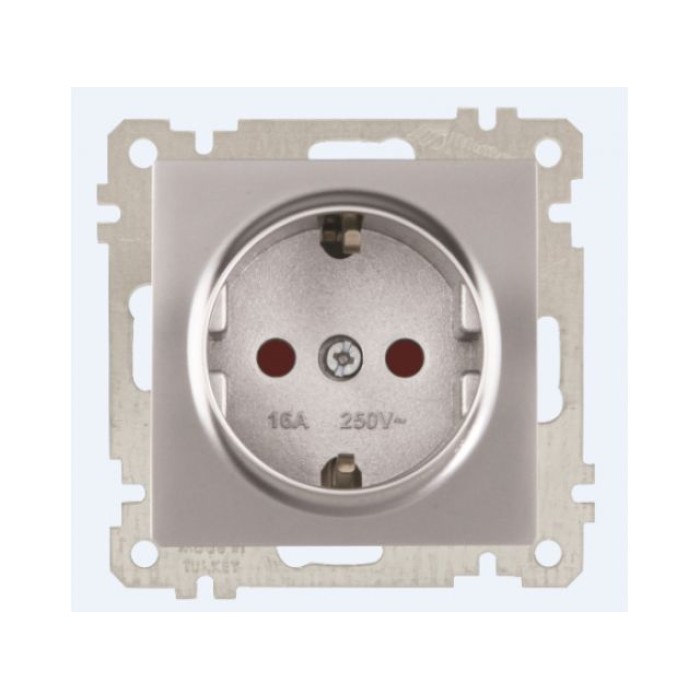 Розетка 1-ая (скрытая, без рамки, с/з, шторки) серебро, DARIA, MUTLUSAN
