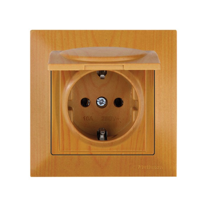 Розетка 1-ая (скрытая, с/з, с крышкой) дуб, DARIA, MUTLUSAN