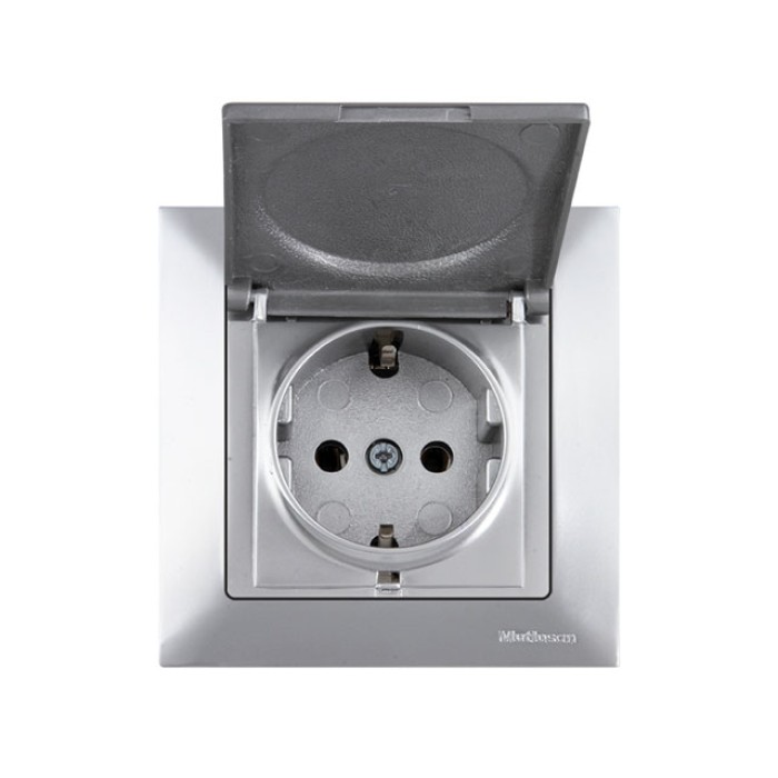 Розетка 1-ая (скрытая, с/з, с крышкой) серебро, DARIA, MUTLUSAN
