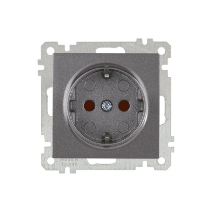 Розетка 1-ая (скрытая, с/з, шторки) дымчатая, ELITRA, MUTLUSAN