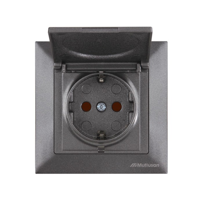 Розетка 1-ая (скрытая, с/з, шторки, с крышкой) дымчатая, DARIA, MUTLUSAN