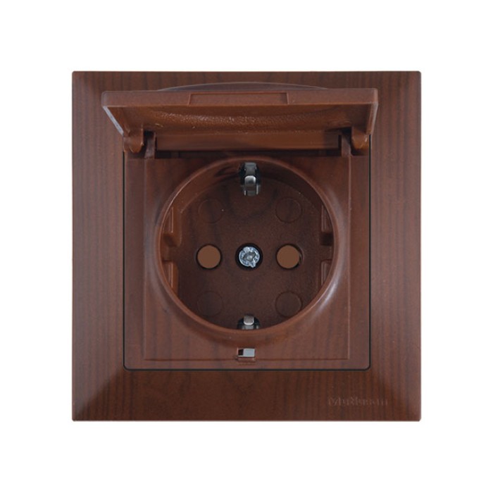 Розетка 1-ая (скрытая, с/з, шторки,с крышкой) орех, DARIA, MUTLUSAN