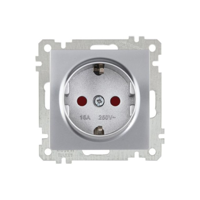 Розетка 1-ая (скрытая, с/з, шторки) серебро, ELITRA, MUTLUSAN
