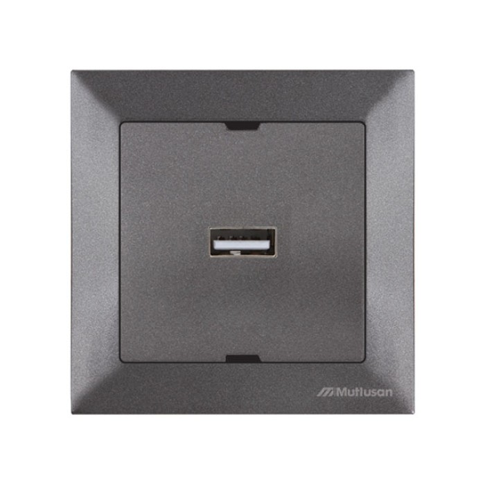 Розетка 1-ая USB (скрытая) дымчатая, DARIA, MUTLUSAN