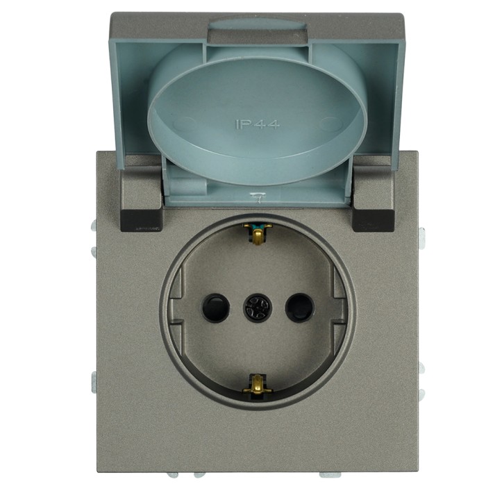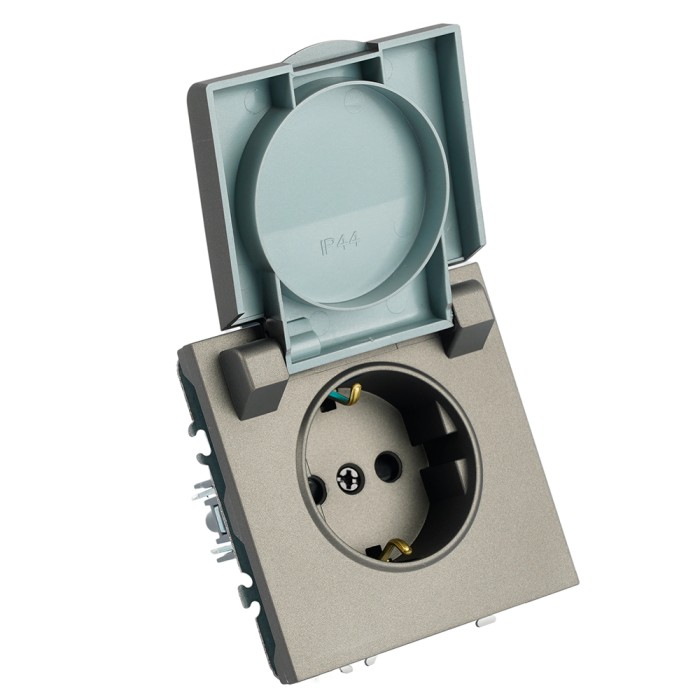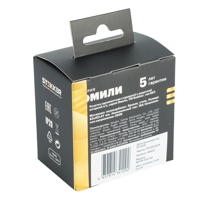 Розетка STEKKER RST16-5112-09 (срок службы 25 лет) на 1 гнездо, да, с заземлением. Материал: поликарбонат, бронза, сталь, цвет антрацит, soft touch, размер 71*71*47мм. Номинальное напряжение 250, номинальный ток 16А, диапазон рабочих температур 0..+35°C, 42