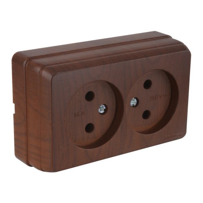 Розетка 2-ая (открытая, б/з) орех, BRON, MUTLUSAN