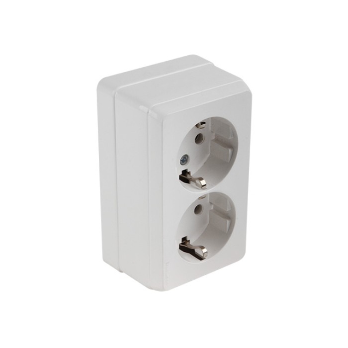Розетка 2-ая (открытая, с/з) белая, BRON, MUTLUSAN