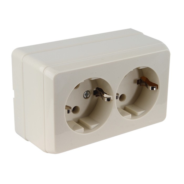 Розетка 2-ая (открытая, с/з) кремовая, BRON, MUTLUSAN