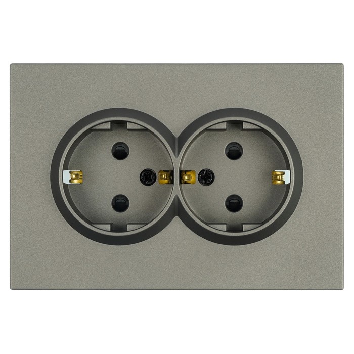 Розетка 2-местная с защитной шторкой, STEKKER, с/з, 250В, 16А, серия Эмили, RST16-5114-09, антрацит, soft touch