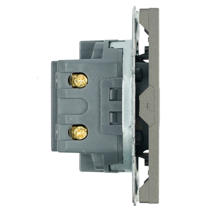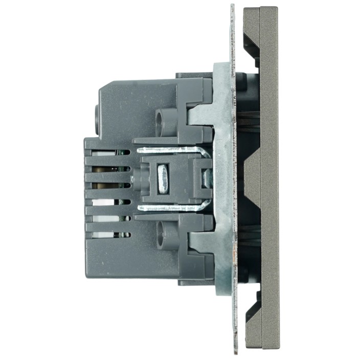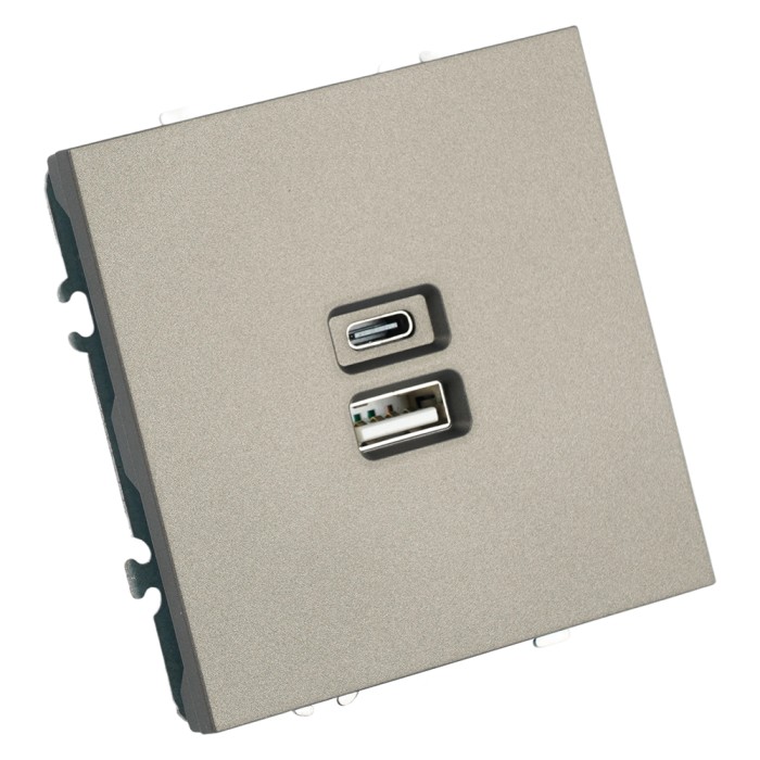 Розетка STEKKER RST10-5115-09 (USB-A: 12В 1,5А/9В 2А/5В 3А USB-C: 12В 1,67А/9В 2.22А/5В 3А, срок службы 25 лет) на USB Type A + Type C гнездо, -, -. Материал: поликарбонат, латунь, сталь, цвет антрацит, soft touch, разме...