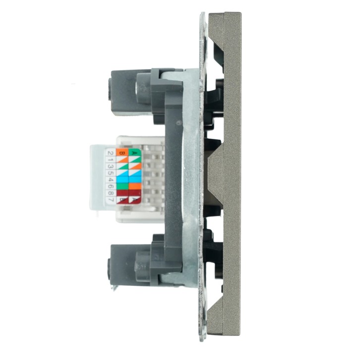 Розетка STEKKER RST00-5117-09 (CAT.5E, срок службы 25 лет) на 1 гнездо, -, -. Материал: поликарбонат, латунь, сталь, цвет антрацит, soft touch, размер 71*71*30мм. Номинальное напряжение -, номинальный ток 1A, диапазон рабочих температур 0..+35°C, 20